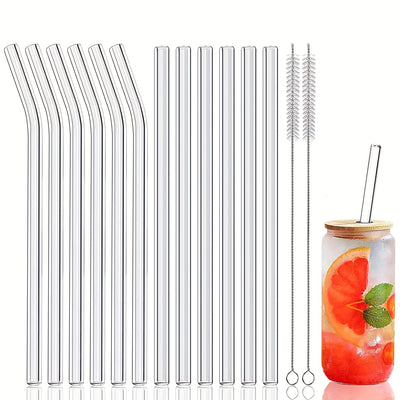 12-Pack Glass Straws, Reusable Glass Drinking Straws, 7.8 Inch Long, Including 6 Straight And 6 Bent With 4 Cleaning Brush, Clear Glass Straws Reusable
