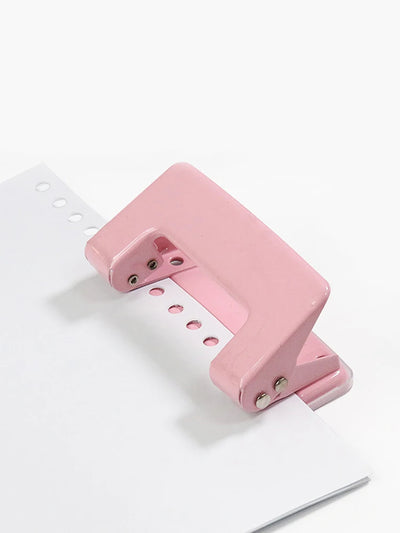 Hole Paper Punch Tool 2-Hole Metal Pink HolePuncher for Office Students Home Supplies